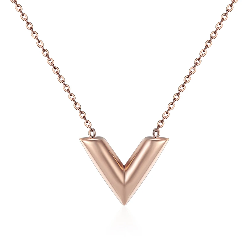 Best Classic Design Famous Brand V Letter Pendant Necklace For Woman Titanium Steel Woman Necklace Luxur