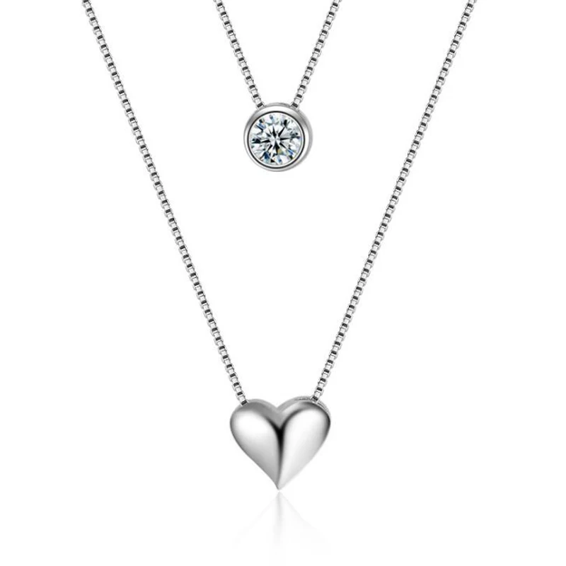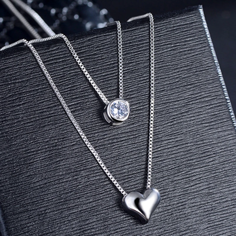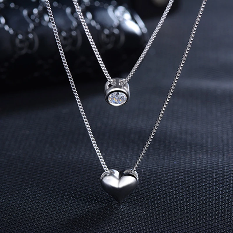 Promo XIYANIKE 925 Sterling Silver Necklace Double Layer Chain Zircon Heart Pendants Necklaces For Women