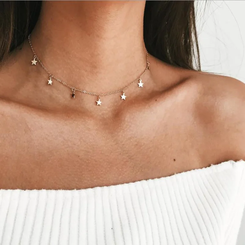 New Boho Gold Color Star Pendant necklace For Girl chain necklaces for women Kolye Bijoux Collares Muje