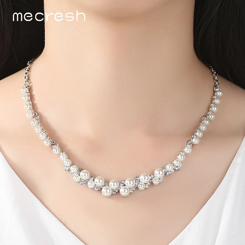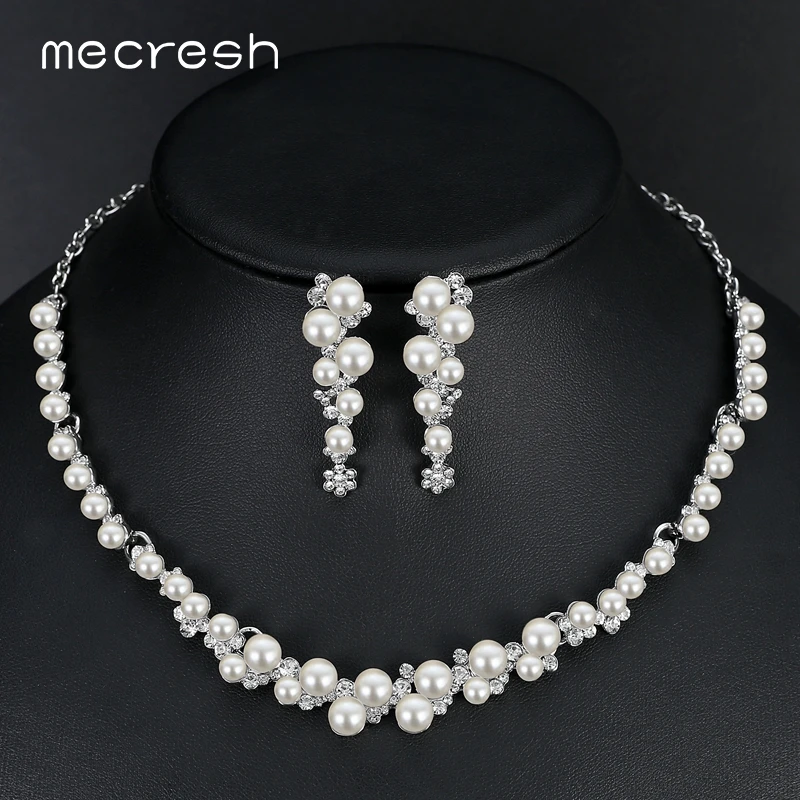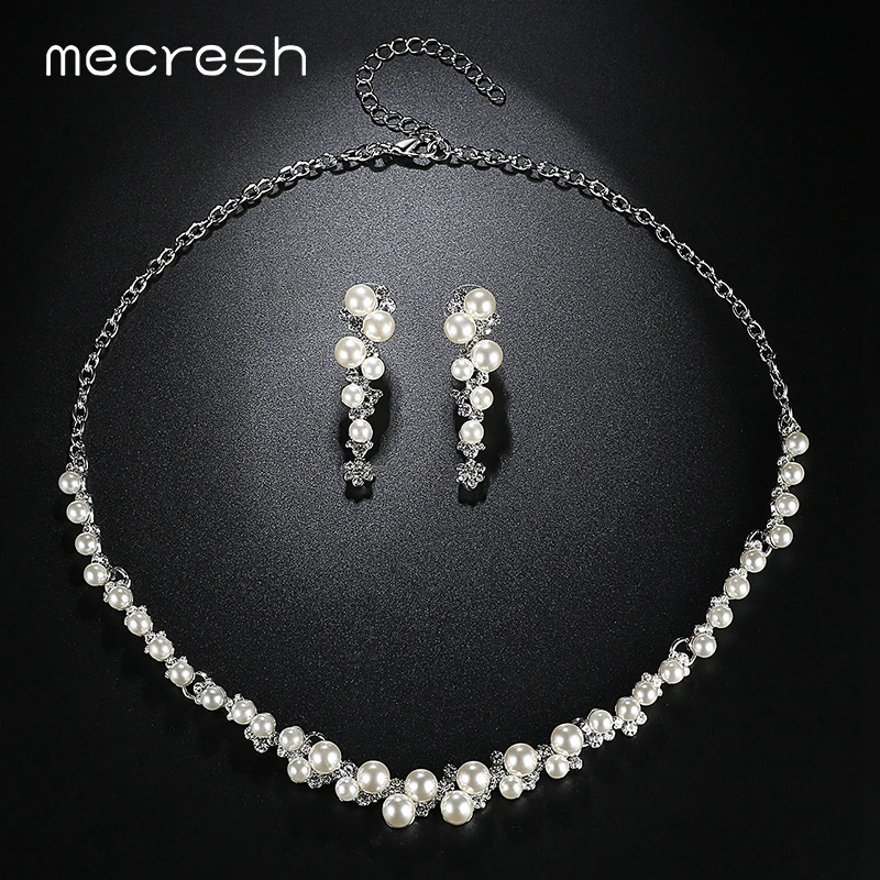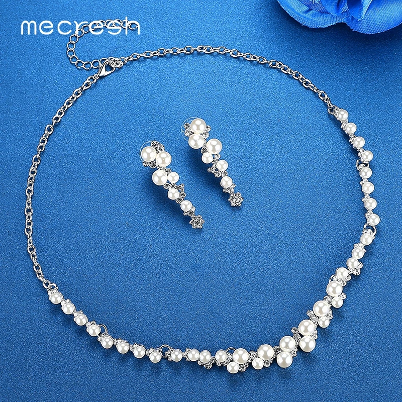 Buy Mecresh Simulated Pearl Bridal Wedding Jewelry Sets Silver Color Flower Necklace Earrings Sets Wedd