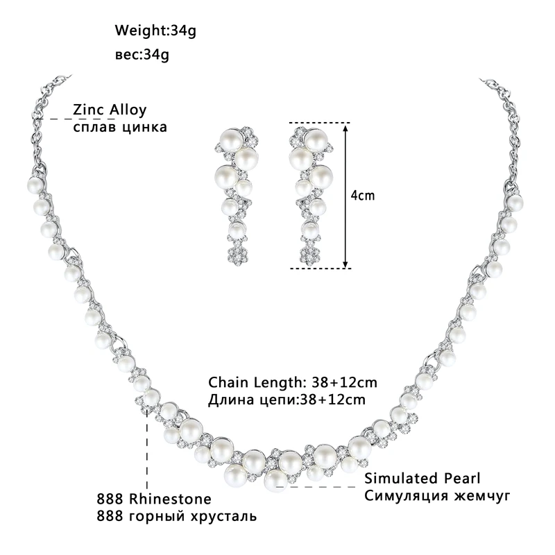 Best Mecresh Simulated Pearl Bridal Wedding Jewelry Sets Silver Color Flower Necklace Earrings Sets Wedd