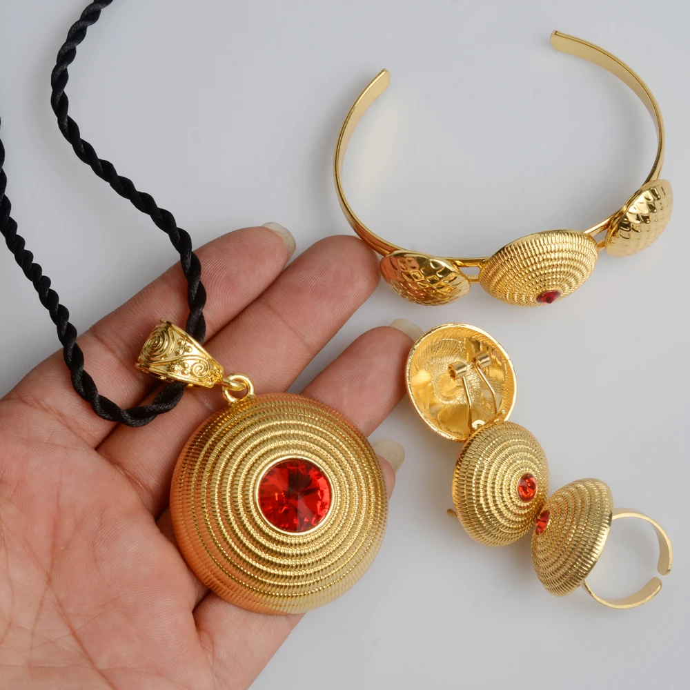 Buy Red/Blue/Green Stone Ethiopian Jewelry sets Necklace Bangle Earrings Ring Jewelry sets African Habe