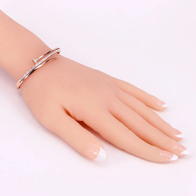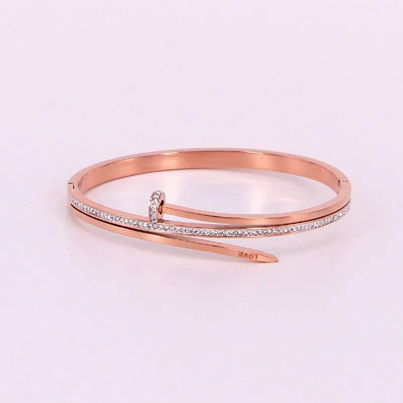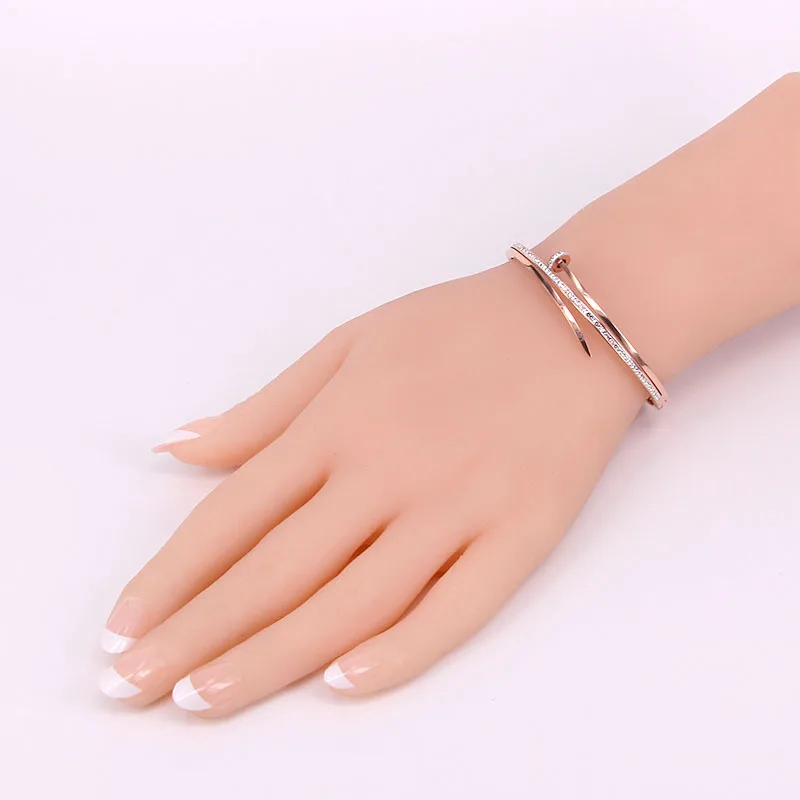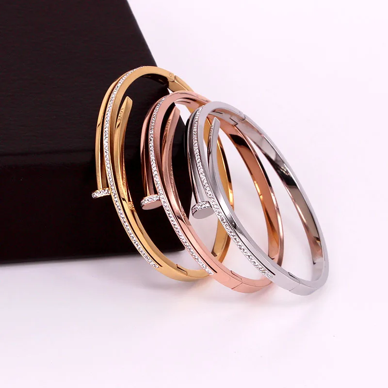 New Personality Women Bracelets Bangle for Women Hollow Three-layer Nail Full Cubic Zirconia Trendy Fem