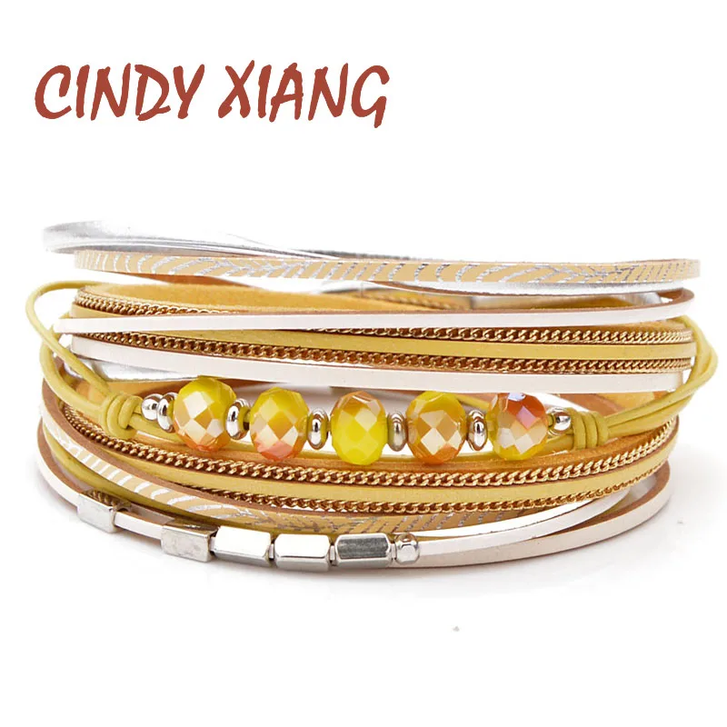 If you search this product, i propose you to take this excelent and best products. I hope CINDY XIANG New Yellow Color Leather Rope Twisted Bracelets For Women Long Multi-layer Bangles Cuff suitable for your needs.