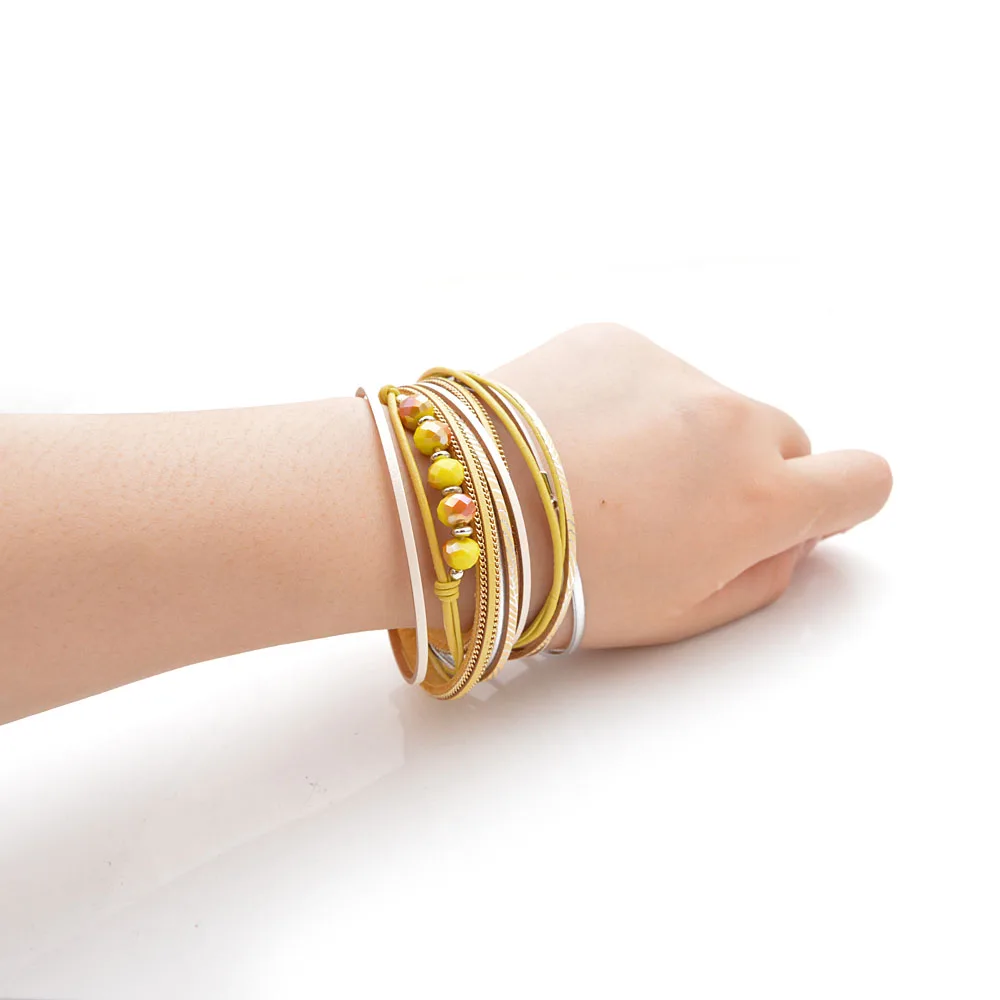 Buy CINDY XIANG New Yellow Color Leather Rope Twisted Bracelets For Women Long Multi-layer Bangles Cuff